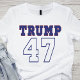 Show your support with this striking Trump 47 T-Shirt. Featuring bold, varsity-style lettering in vibrant red and blue, this shirt makes a powerful statement. The classic design is both stylish and comfortable, perfect for rallies, casual outings, or everyday wear. The strong graphic content proudly displays your political stance, making it a standout piece in any wardrobe. Embrace the spirit of the movement with this eye-catching t-shirt, designed for those who are passionate and proud.