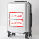 Bold red and white cancelled notice stickers with the American spelling with one 'L'