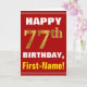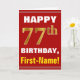 Bold, Red, Faux Gold 77th Birthday w/ Name Card