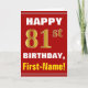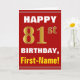 Bold, Red, Faux Gold 81st Birthday w/ Name Card