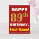 Bold, Red, Faux Gold 89th Birthday w/ Name Card