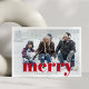 Bold Red Merry Photo Family Christmas Modern Holiday Card