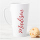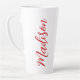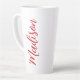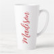 A bold red personalised monogram latte mug for a girl or guy who loves simple, handwritten gifts. Beautiful cursive script down the side of your bottle spelling out your name.