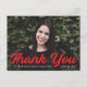 Simple and stylish graduation thank you postcard featuring the graduate's horizontal photo with "Thank You" in a bold red script. Personalise the front of the photo graduation thank you postcard by adding the graduate's name, school name, and graduation year. The postcard reverses to display your return address and custom thank you message.