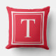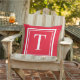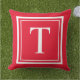 A bold outdoor pillow featuring a white monogram initial inside a square frame border on a vibrant red background. The timeless serif letter and clean geometric frame create a striking, confident accent for patio furniture, deck seating, or porch decor. The initial is fully customisable.