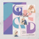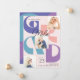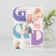 Celebrate your Graduate with this Retro 3 photo graduation announcement card. The design features bold 'GRAD' typography in purples, peachy pink and turquoise in a modern collage layout. Room for text on back for additional information or to add invitation info.