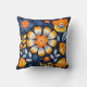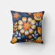 Bold Retro Floral Illustration in Orange and Blue Cushion