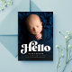 A bold retro-style "hello" in white against a single vertical photo makes a sweet and stylish way to introduce your new baby. With room for name and stats on the front with the photo, the back of this birth announcement is a sweet dotted dusty blue. Perfect for cool new parents to introduce their new little girl with a bit of modern vintage flair! Back also includes room for a second photo. This design is also available as a birth announcement digital download.