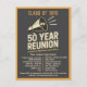 Celebrate your big reunion in bold style with this eye-catching high school reunion invitation featuring a retro megaphone design. Perfect for the Class of 1976 or any year, this customizable card includes editable text for your event date, time, location, and RSVP. Great for 50-year reunions, alumni parties, or multi-class events. Professionally designed for both print and digital sharing. Make your celebration unforgettable!