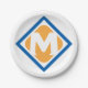 The striking letter "M" icon takes centre stage against a lively orange background, creating a visually appealing and modern aesthetic. The high-quality graphic is printed on durable paper plates, ensuring both sturdiness and style. These plates are not just disposable – they're a conversation starter!