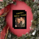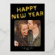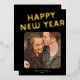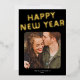 This fun New Year photo card features retro inspired typography in raised foil with a single square photo on a chic black background. On the reverse side is the same black background. You can customise this design further by adding another photo or additional text to the back. Add the "wow" factor with a real pressed foil holiday card this year!