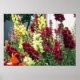 Bold, colourful snapdragons (Antirrhinum majus 'Rocket Mix') really stand out. Colours include shades of bronze, lemon, orchid, pink, red, rose, white, and yellow. Notice the orange tiger lily in the bottom left corner.