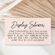 Share your baby shower plans with this simple and stylish display shower enclosure card featuring classic black text on a soft blush background. The minimalist design is perfect for modern baby showers with elegant or romantic themes. Customise the wording to let guests know their unwrapped gifts will be displayed, making room for more mingling and less cleanup. This card coordinates beautifully with our Oh Baby Script baby shower collection.