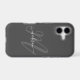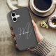 A bold stylish iPhone 17 case design featuring your monogram initial in large stylish font in gray with your name in a white handwritten font over a darker charcoal gray background. The look is stylish and attractive and all about you! It's a great choice for protecting your smart phone in a stylish manner - it's fashion for your phone! Personalize with your name and initial. When personalizing your name, be sure to leave the square box symbols on either end of your name. They create the leading and trailing swashes that add a stylish look. If you need to re-center your initial after personalizing it, select "edit using design template" which will open the full editor and allow you to move things around as needed. Other models of phone cases are also available in this stylish design.