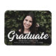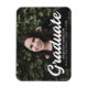 Simple and stylish graduation announcement magnet featuring the graduate's horizontal photo with "Graduate" in a bold white script. Personalise the photo graduation magnet by adding the graduate's name, school name, and graduation year.