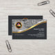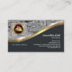 An elegant exquisite creation. You have a silver cement brick wall as a background. At the forefront is a three layered wave with the colours of silver, gold and black. The silver faux lining accentuates the brick wall. All your card info sit at the right wall of the card in the black section. Your name and job title sit elegantly at the top, followed by all your contact details. Westwards to this, is an option for you to create a slogan-tagline. Finally, there is a square space in the brick wall above where you can attach your logo. In this instance, you have your very own faux gold icon of a gold home with colour chart behind it.