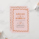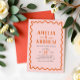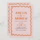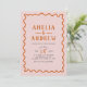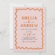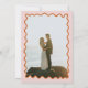 This bold coral pink wedding invitation embraces a retro theme, featuring a vibrant wiggly orange border and simple typography. Its unique bright design includes space to add a photo on the back, and personalise the couple’s details, making it perfect for couples wanting to celebrate a retro-inspired, boho, fall, or summer wedding. Explore matching items in our wedding suite to complete the look!