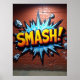 This piece, born from the raw energy of urban art, is a testament to the power of a single moment of impact. It's not just a word; it's an event frozen in time, capturing the very instant of a powerful "SMASH!" The detailed rendering of the shattered debris flying outward, combined with the vibrant colours and sharp lines, gives the viewer a visceral sense of the force and chaos involved. What makes it special is its fusion of two distinct styles: the explosive action of comic book art and the rebellious spirit of graffiti. The brick wall background grounds the piece in a street art aesthetic, while the clean, bold lettering and dynamic starburst make it pop with a graphic energy that is both nostalgic and modern. It's a celebration of bold action, a visual exclamation point that declares its presence with unmissable style and force.