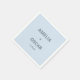 This custom wedding napkin features a soft blue background with bold typography of couple's names and wedding date. Customizable with your names and date. For couples who want a clean, minimalist, bold wedding napkin for reception tables.