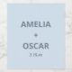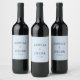 This custom wedding wine favor features a soft blue background with bold typography of couple's names and wedding date.
