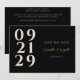 Make your engagement announcement stand out with this modern and elegant Contemporary Save the Date design. Featuring bold number typography in ivory on a sleek black background, with a touch of gold highlighting the couple's names for a luxurious touch. The minimal and contemporary design on the front ensures your guests are informed about your upcoming wedding, while the back provides space for additional details and a convenient QR code. This save the date invitation is perfect for couples looking for a stylish and sophisticated way to announce their special day.