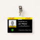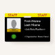 This bold and eyecatching staff badge design features editable information such as a portrait photo, a business/company logo, a staff member name, and a role name. A badge like this could be used to identify somebody as an employee of a business, company, or organisation. [~Z0000450]