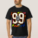 This black T-shirt features a dual style of street graffiti + vintage hip-hop: the front showcases a bold, oversized “99” number as the base, overlaid with a retro microphone element, paired with contrasting orange and white colors plus a colorful striped graffiti texture. The brushstroke effect is full and instantly amplifies street fashion vibes.