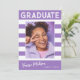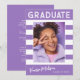 Trendy bold striped, retro graduation announcement photo cards, featuring design elements of retro text with handwriting. The graduates photo is accented with bold white stripes. The back of the card offers personalised text spaces for information about your graduation and future journey. White writing on elegant violet or easily customise the background to match your school's primary colour or any colour of your choice. Perfect for the high school, college and university grad.
