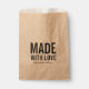 Stylish rustic kraft favour bag with the word "Made with Love" in bold font and a stylish script for your name or store name in dark grey. It's great for your handmade or homemade goods and favour gifts.