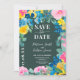 Rustic black chalkboard chic bold summer floral photo wedding save the date with painted blue, yellow wild field sunflowers, pink roses, sage green eucalyptus on editable dark sage green. Perfect for summer, rustic barn outdoors weddings.