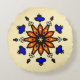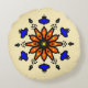This unique hand-drawn mandala features a rustic, artistic charm with natural variations in the pattern alignment. The vibrant orange and blue sunburst design creates a stunning focal point for any room."