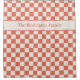 Bold terracotta and cream chequered pattern features your family name in a modern burnt orange serif font within an off-white band near the top. Personalise it with your name or text in the sidebar.
