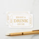 These simple yet very stylish cards are perfect to give to your party guests so they can redeem a free drink at your special event.