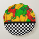 Bold Tri Coloured Peppers and Chequerboard Round Cushion