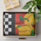 Top half of this design is bright and bold coloured bell peppers in green, red and yellow with bottom half a black and white chequerboard. Great design for decoupage or gift wrap!