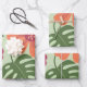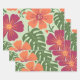 Bold Tropical Hibiscus & Monstera Leaf Wrapping Paper Sheet