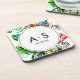 Bold Tropical Palm Leaf Wreath Wedding Monogram Coaster