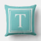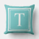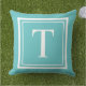 A bold outdoor pillow featuring a white monogram initial inside a square frame border on a bright turquoise background. The timeless serif letter and clean geometric frame deliver a fresh, tropical accent for poolside lounging, patio furniture, or deck chairs. The initial is fully customisable.