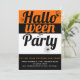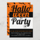 Halloween bats and spiders modern bold typography party invitation. A modern and contemporary halloween invite featuring a halloween witch, bats and spiders on orange, black and white bands.