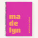 Notebook featuring your name in big, bold, orange letters on a magenta hot pink background.
