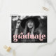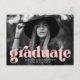 Bold graduation party invitation postcards featuring the graduate's horizontal photo with "graduate" in bold blush pink lettering. Personalise the photo graduation party invites by adding the graduate's name, graduation year, and school. The postcard graduation party invite reverses to display your return address and party details.