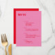 Bold Typography Bright Pink and Red Modern Minimalist Wedding Menu