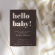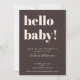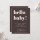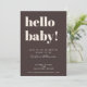This baby shower invitation in brown features bold, modern typography with a playful “hello baby!” headline and a rich neutral background. Names, date, time, location, and RSVP details are fully customizable to fit your celebration. The simple layout makes it easy to read and works beautifully for brunch showers, restaurant gatherings, and intimate events. A modern option parents-to-be love for its timeless style and effortless coordination with matching shower decor.