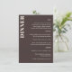 These personalized dinner menu signs in brown help guests easily follow the meal courses at a wedding reception, rehearsal dinner, or formal celebration. Customize the layout with your menu details to coordinate with your table settings, place cards, and signage. The clean, modern typography works well for plated dinners, multi-course meals, and catered events where clarity and style both matter. A great choice for couples planning a polished reception and looking for signage that feels cohesive and intentional.