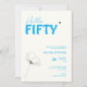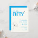 Bold Typography Ivory Blue Elegant 50th Birthday Invitation
