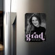Stylish graduation magnets featuring the graduate's vertical photo with "grad" in bold lilac purple lettering. Personalise the photo graduation magnet by adding the graduate's name, graduation year, and school.