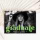 Stylish graduation announcements featuring the graduate's horizontal photo with "graduate" in bold lime green lettering. Personalise the photo graduation announcement by adding the graduate's name, graduation year, and school. The announcement reverses to display a lime green and white retro arch pattern.