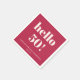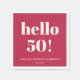 Celebrate in style with these bold and cheerful napkins that say "hello 50!" in a playful and modern font. Perfect for milestone birthday celebrations, these customisable napkins add a personal touch to your party decor, featuring the honoree's name and date below the vibrant centerpiece text. Ideal for creating a fun and memorable atmosphere, these napkins are a festive addition to any table setting or cocktail bar.