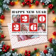 Bold typography New Year 2026 photo collage red Holiday Card. A visually striking New Year 2026 photo collage card in a rich red hue. The front immediately catches the eye with a vibrant photo collage, featuring four cherished images. Interspersed among these, the words "Happy New Year 2026" pop in bold typography, each set against its own distinct, bright red square. The back completes the design with a classic red and white diamond pattern, offering a charming frame for an included family photo.
