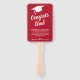 Modern graduation hand fan featuring "congrats grad" along with a grad cap and your personalised message in white over your school colour. Sample colour is red, but you may change the background to your school colour by clicking the customise button. The backside has your favourite full bleed photo of the graduate. These simple hand fans are perfect for a high school graduate and are a great way to add a personal touch to your graduation party.